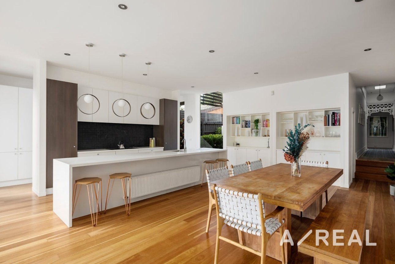 Concealed behind a high-security fence and set well back from the street, this exceptional brick Edwardian home seamlessly combines timeless period charm with a superb modern extension. From the tessellated tile entrance and beautifully tuck-pointed façade, the home immediately impresses with its light-filled, immaculately presented neutral interior. The expansive open-plan family room incorporates generous living and dining zones, enhanced by built-in Bose surround sound, and is serviced by an impressive kitchen featuring Caesarstone benchtops, premium Smeg and Bosch appliances, and a concealed preparation area with excellent storage. Flowing seamlessly outdoors, the living area opens onto a substantial covered deck with built-in BBQ, ideal for year-round entertaining, overlooking the rear garden and a self-cleaning in-ground swimming pool.