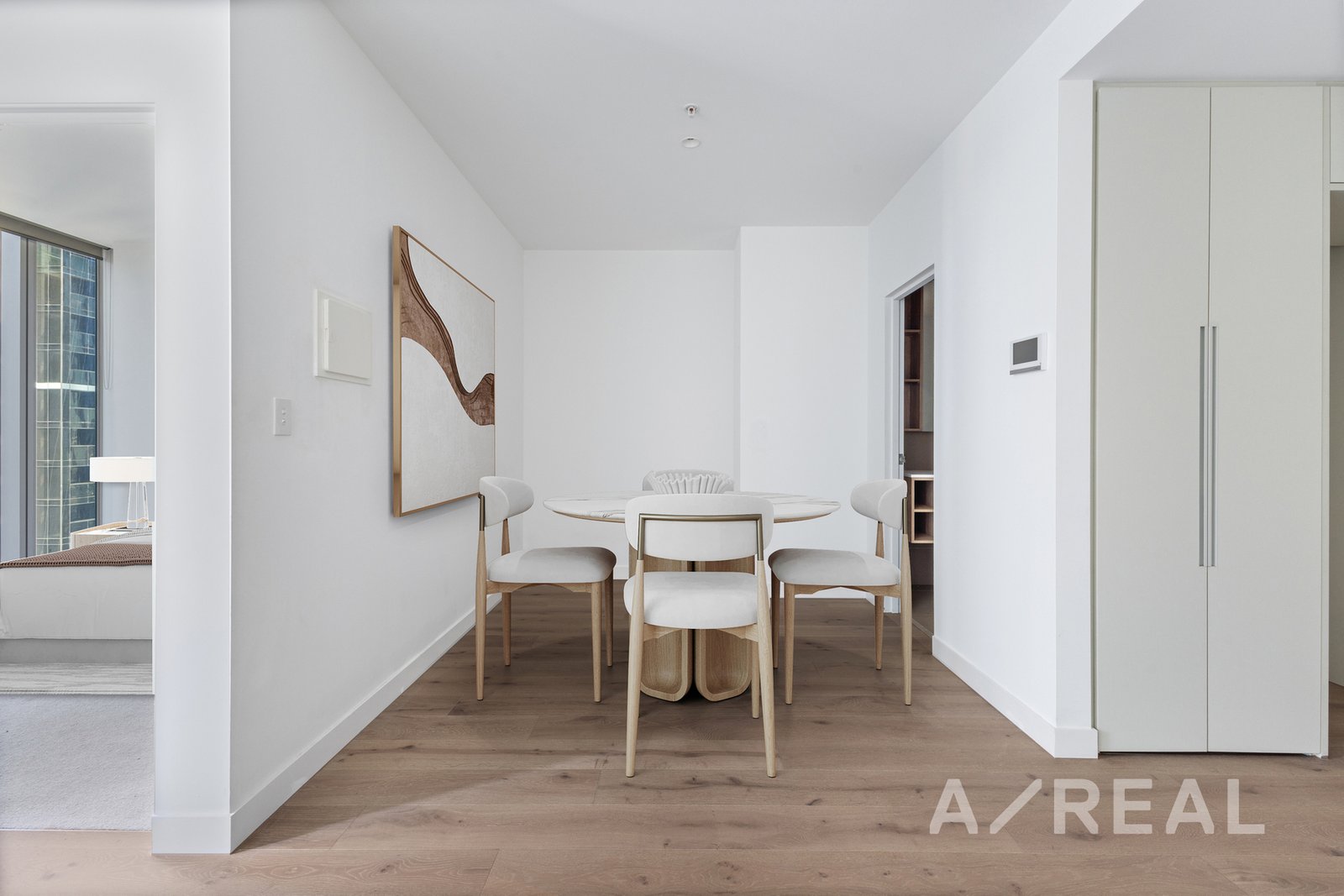 Positioned high within the coveted West Side Place Tower D, this light-filled one-bedroom residence offers a low-maintenance, connected base for CBD living. Open-plan living and dining flows to a covered northerly aspect balcony, creating an easy extension for relaxation, with the flexibility to zone a dedicated study nook without compromising the everyday comfort of the layout.