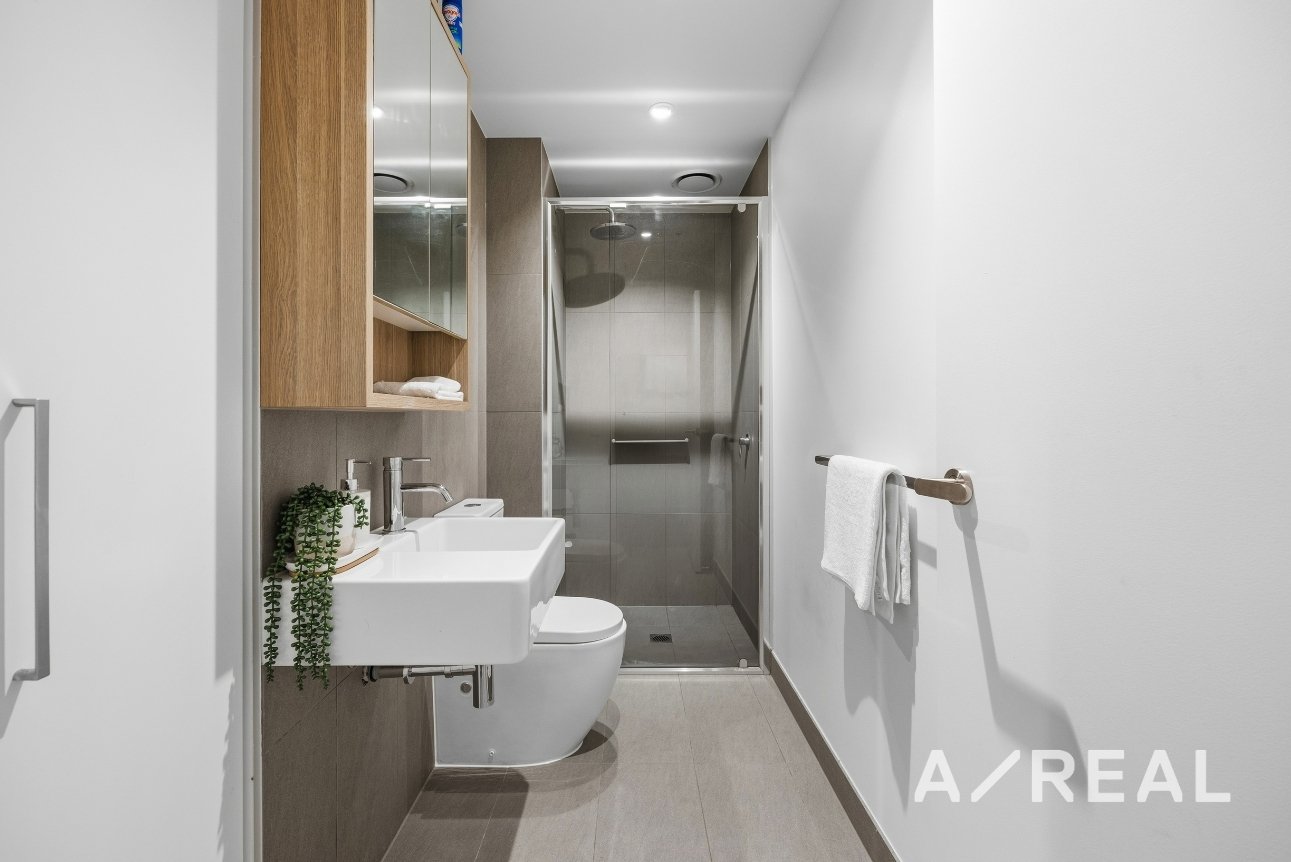 The light-filled open-plan living and dining area is complemented by a sleek, well-appointed kitchen featuring quality appliances and modern finishes. A generously sized bedroom with built-in robes is serviced by a stylish bathroom, while split-system heating and cooling ensures year-round comfort. Thoughtfully designed for easy living, the apartment provides a functional layout ideal for professionals, city-based buyers or investors.