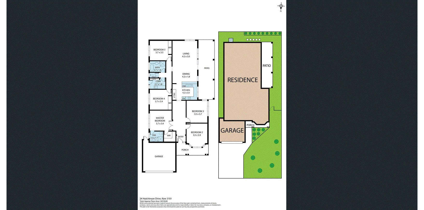 Designed for growing families, the home features five well-sized bedrooms, including a private master retreat complete with walk-in robe and ensuite. Three additional bedrooms include built-in robes, providing excellent storage and flexibility for family living, guest accommodation, or a home office setup.
