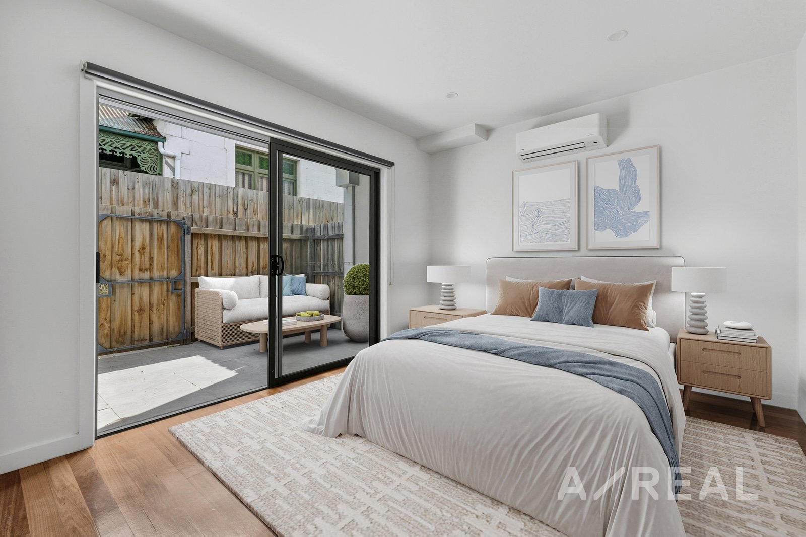 Beyond, a robed bedroom, central bathroom and laundry are ideal for visitors or flexible living. Sliding doors open to a sunlit rear patio courtyard, creating a private and low-maintenance alfresco extension.