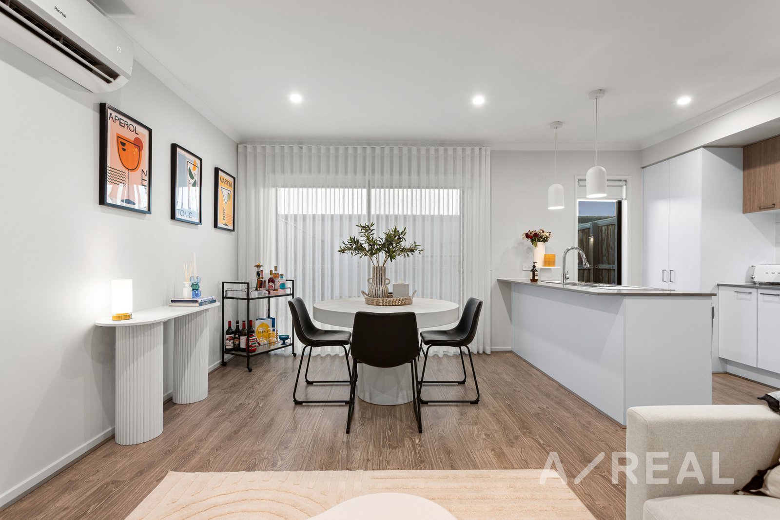 Downstairs, a light-filled open plan living, dining and kitchen zone forms the heart of the home, creating the perfect space for everyday family life and effortless entertaining. The well-appointed kitchen offers ample storage and preparation space, while a separate lounge at the front provides valuable flexibility as a second living area, home office or retreat. A dedicated laundry and convenient downstairs powder room add to the home’s practicality.
