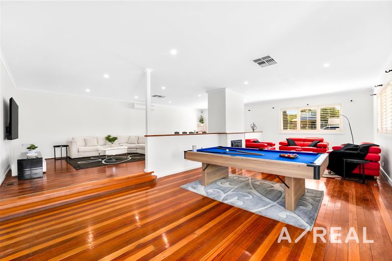 Designed for both everyday living and entertaining, the property offers multiple living zones, including a large family area and separate lounge. The home is currently furnished with a snooker table, genuine leather sofas and a solid timber dining setting, creating a comfortable and functional environment. Furniture inclusion remains flexible depending on tenant preference.