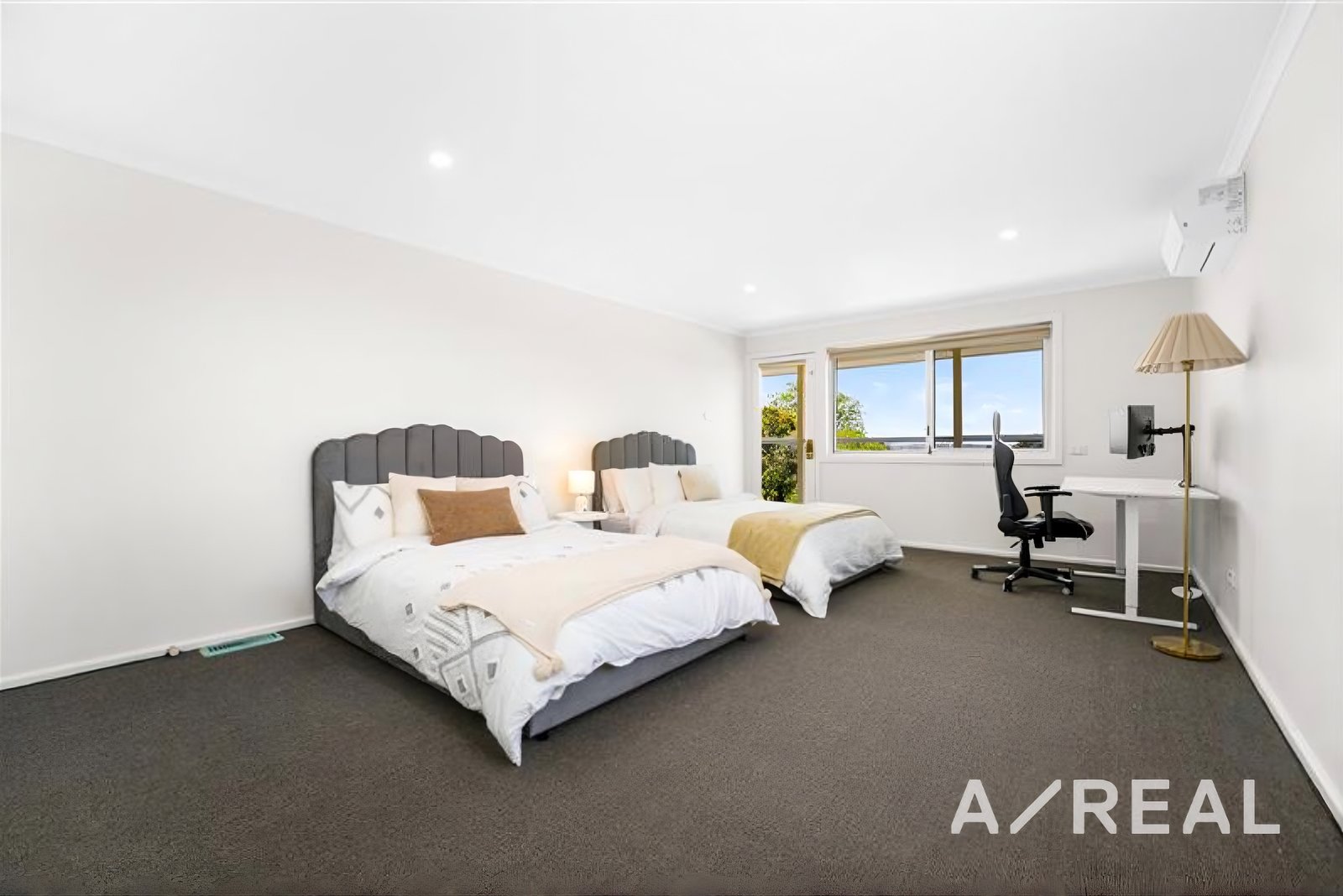The home features five generous bedrooms, including a master suite with private ensuite and oversized walk-in wardrobe. Each bedroom is fitted with its own air-conditioning unit, ensuring year-round comfort and privacy.