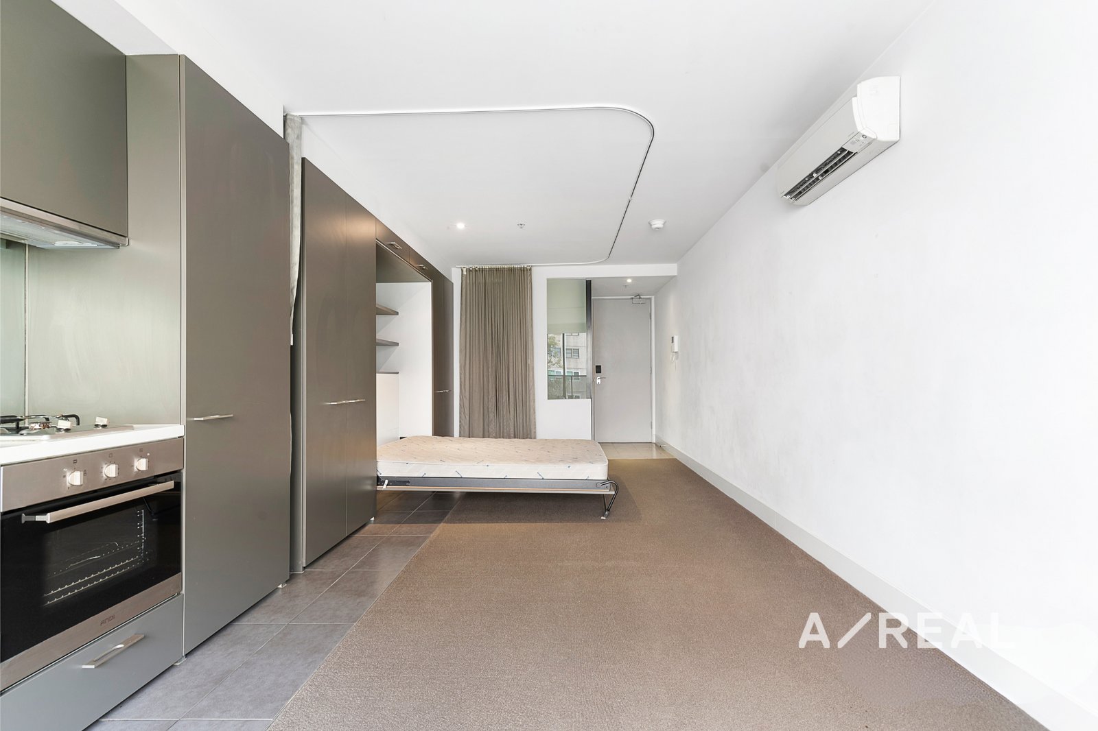 Experience the perfect blend of comfort and style in this thoughtfully designed studio apartment, where every feature has been carefully curated for modern living. The space includes a versatile pull-down bed, seamlessly transitioning to suit your lifestyle and combining functionality with a sleek, contemporary design. The kitchen, complete with a gas cooktop and dishwasher, makes meal preparation a breeze.