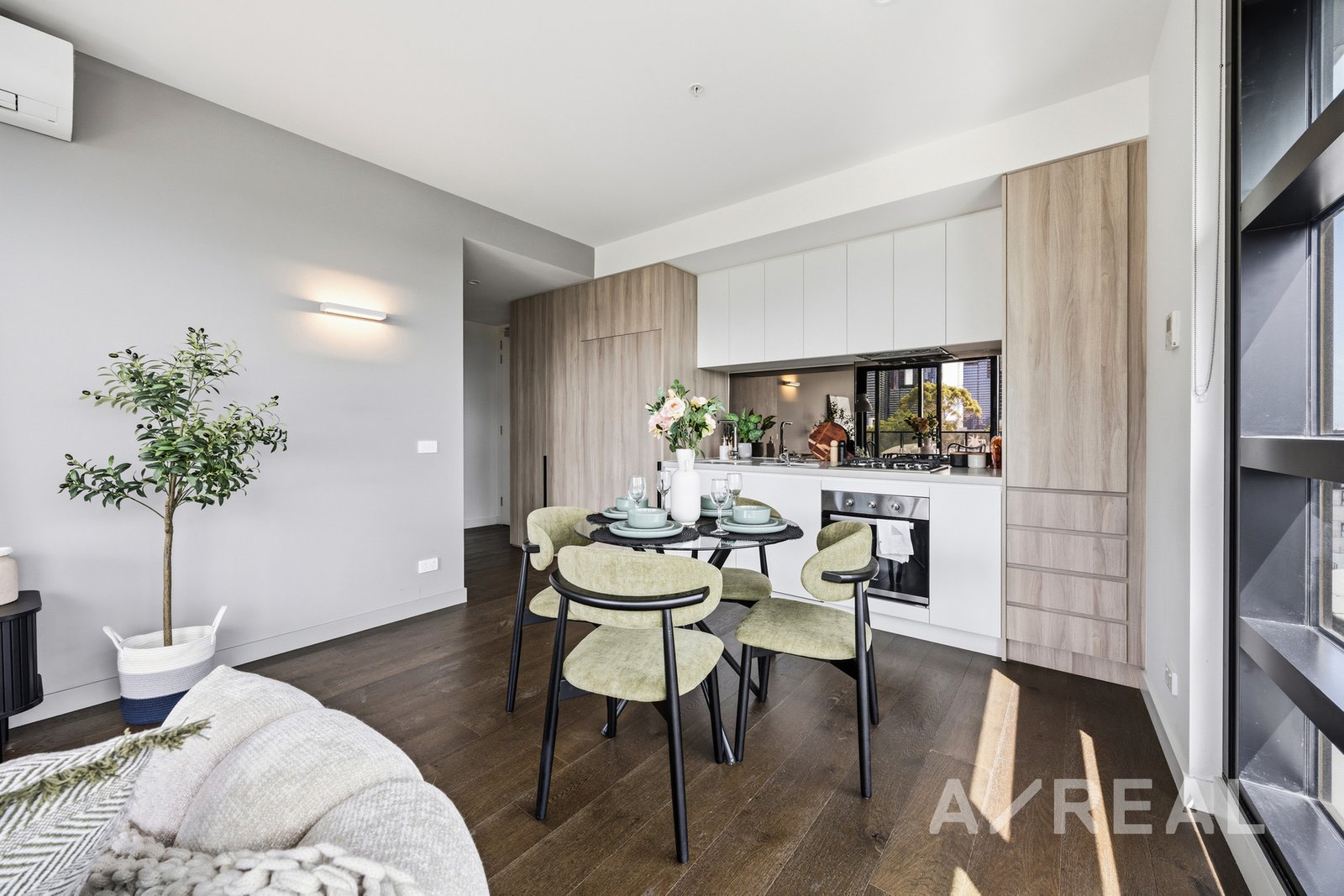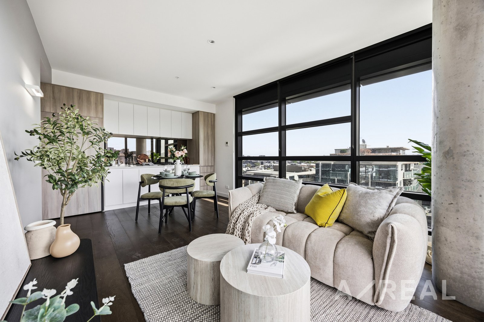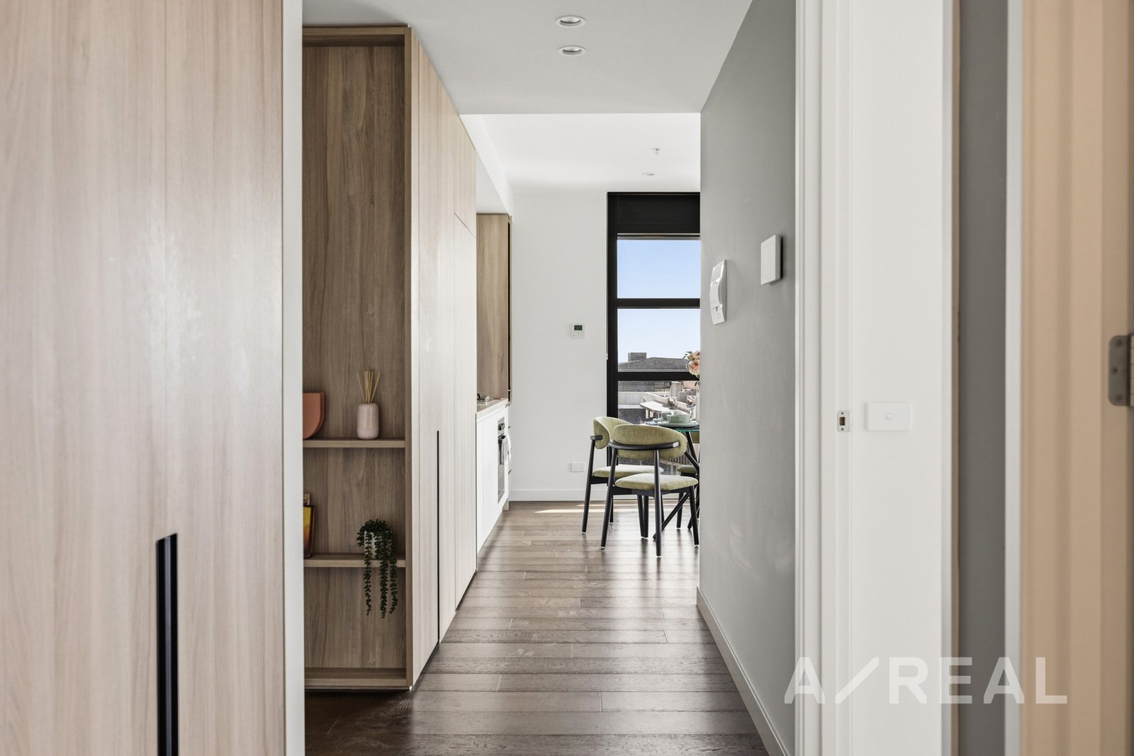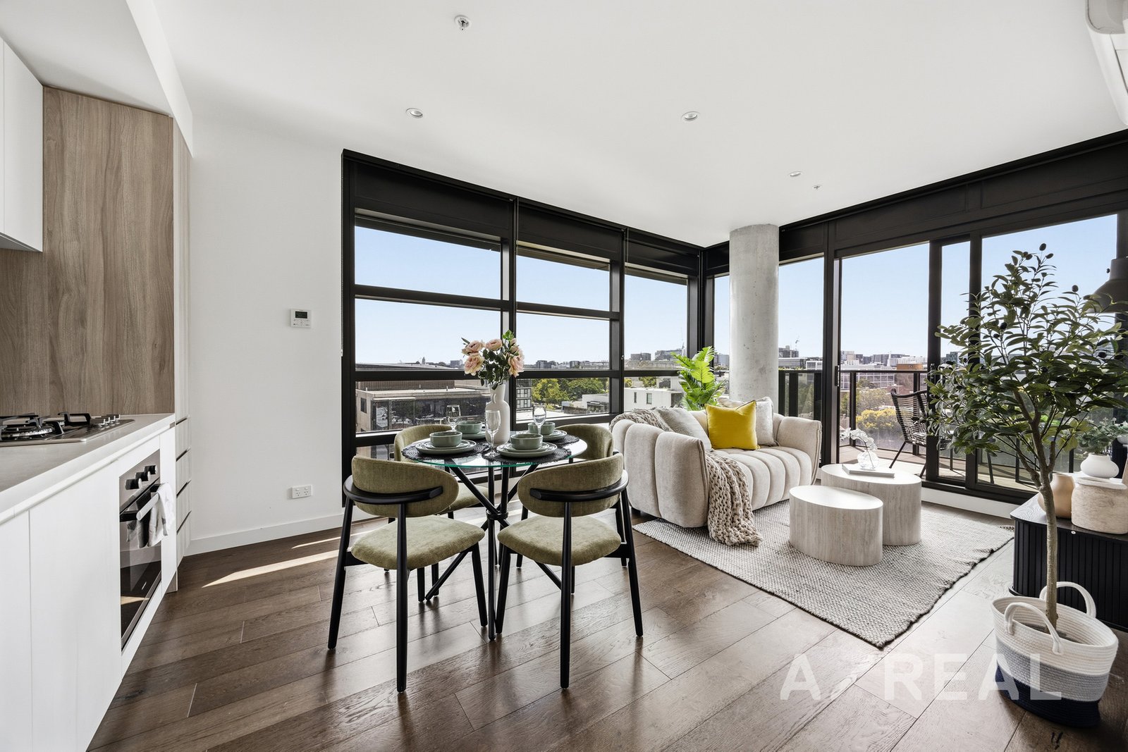 Set on Level 8, the apartment enjoys an abundance of light through expansive glazing, enhancing the open-plan living and dining domain. The space flows seamlessly to a private balcony-an ideal retreat to unwind or entertain while taking in views across the Melbourne skyline and the greenery of Flagstaff Gardens.