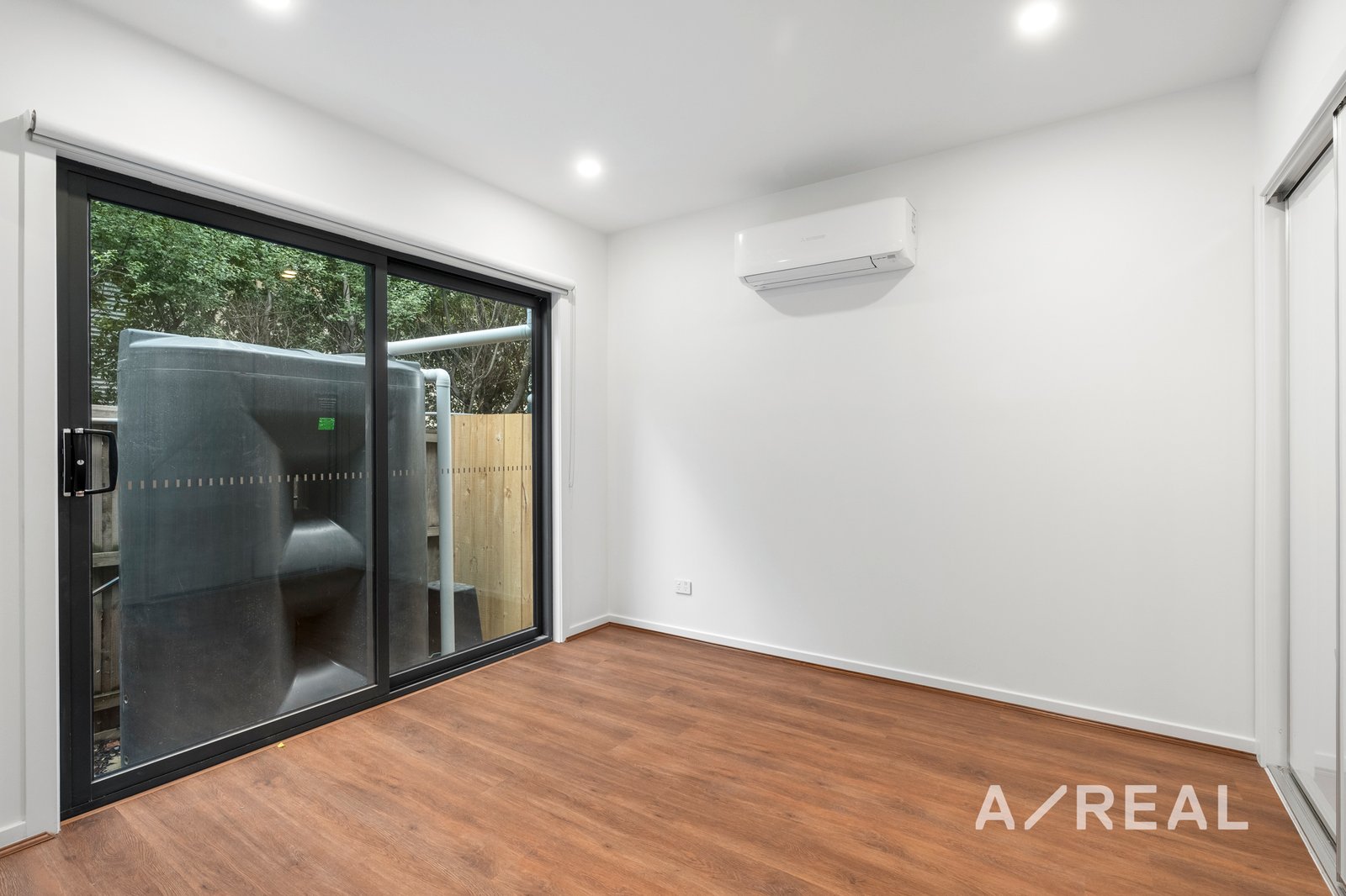 Sliding doors open to a low-maintenance private courtyard, offering the perfect space to relax or host guests without the upkeep.